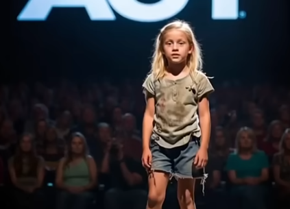Standing alone under the giant AGT sign, the girl’s hands trembled. She glanced nervously at the judges, her eyes filled with both fear and determination. For a moment, the room seemed to hold its breath.